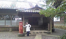 写真は綾城の近くにあった明治時代の校舎と私。